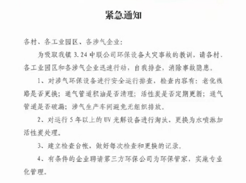 2023年3月27日東莞市生態環境局橫瀝分局公告,對運行5年以上的UV光解設備該更換了,更換為水噴淋加活性炭處理設備。
